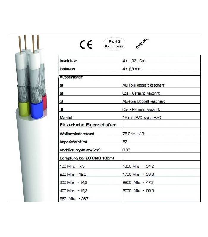 Le câble 19 vatc 4 en 1 avec 4 couleurs différentes pour lnb quatro et petit collectif pour les multiswitches.