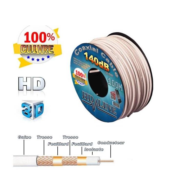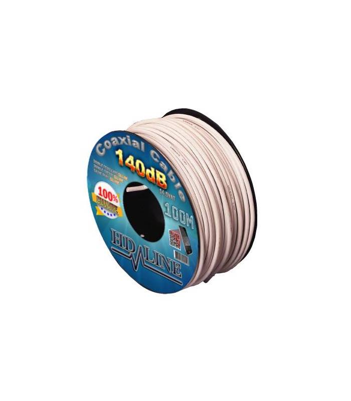 Modèle : Bobine de cable coaxial blanc de 100 mètres.