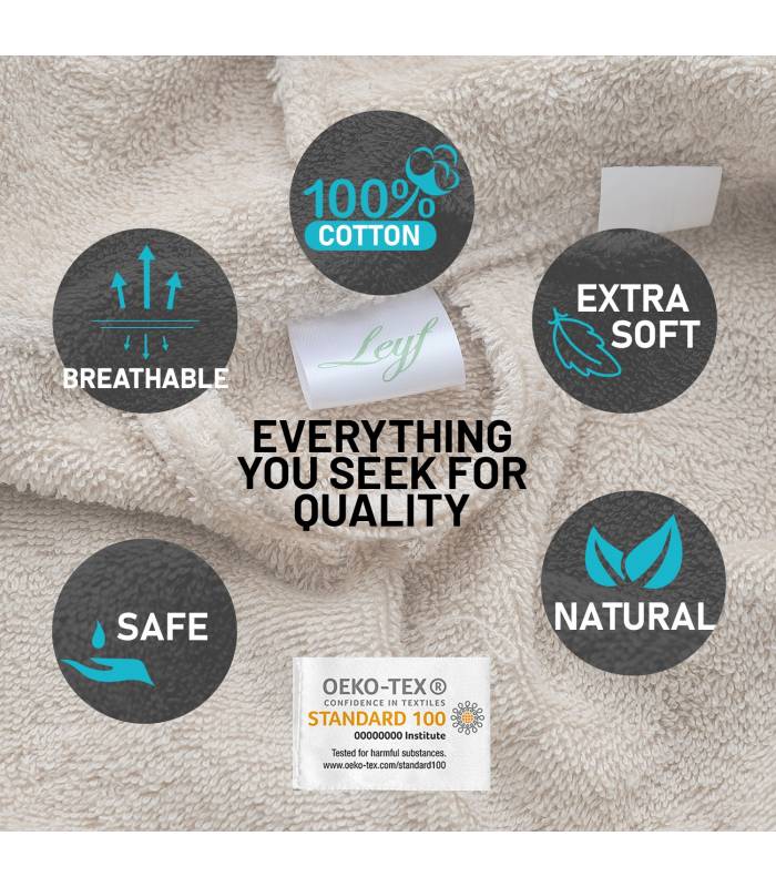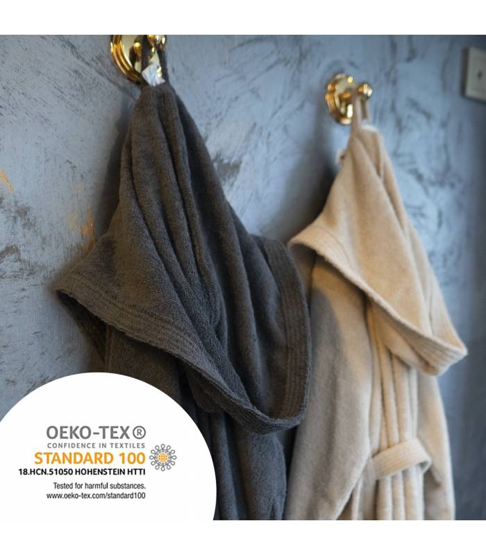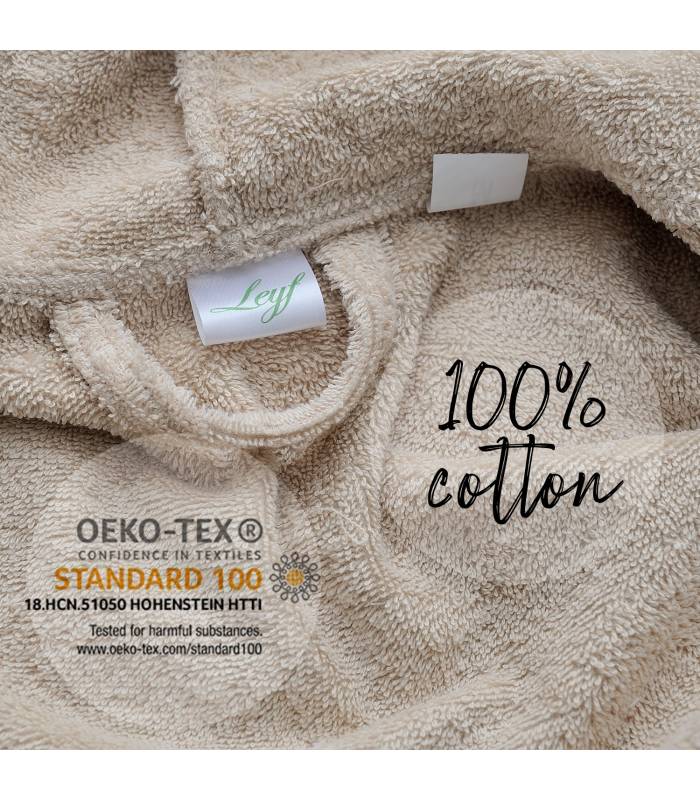 Les peignoirs Leyf ont reçu le sceau d\'approbation indépendant OEKO TEX, qui garantit que votre tissu en coton éponge est exempt de produits chimiques. Vous pouvez le porter et l\'utiliser sans hésitation. Vous pouvez rechercher le sceau OEKO TEX. Seules quelques entreprises obtiennent ce sceau. C\'est un sceau très spécial.