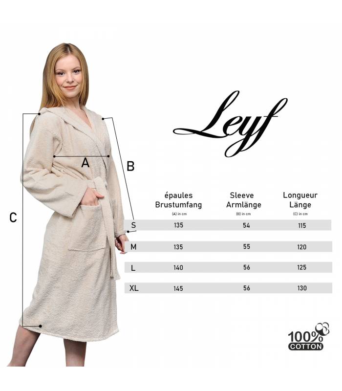 Nos peignoirs Leyf sont d\'une grande qualité qui ne gonfle pas après utilisation. Ses couleurs ne s\'estompent pas non plus. Nos peignoirs Leyf, fabriqués avec des technologies supérieures, ne rétrécissent pas, ne s\'étirent pas et ne se déforment pas après le premier lavage.